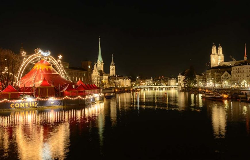 Екскурсія Цюрихом з оглядом мальовничого Старого міста, величного Цюрихського собору Гросмюнстер з двома вежами-близнюками, легендарного кабаре "Вольтер", церкви Богородиці з феєричними вітражами Марка Шагала, древнього собору св.Петра, ренесансної Ратуші, а також "найкрасивішої вітрини Швейцарії", знаменитої Bahnhofstrasse - Привокзальної вулиці (Бангофштрассе).